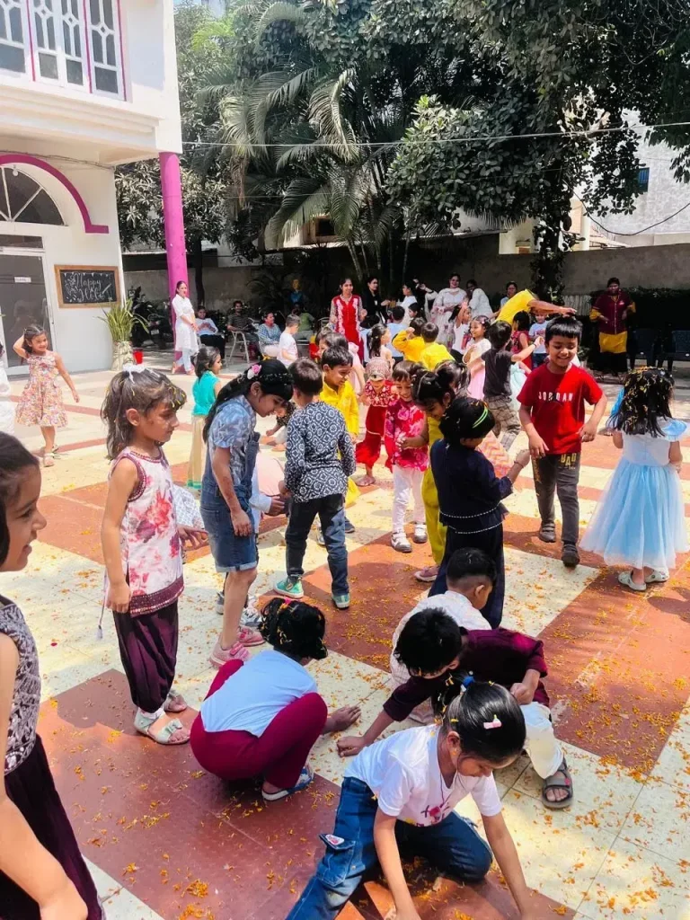 Every year, our children celebrate Phoolon ki Holi with joy, playing with flowers and enjoying the festival with friends and teachers. It’s a vibrant day filled with color, laughter, and togetherness!